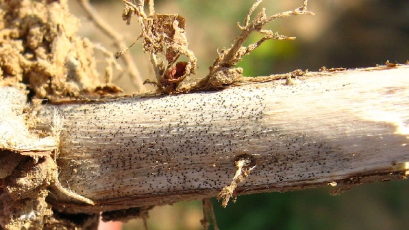 Impact: Lesions surround the stem and cut off water and nutrient flow to the plant, which can cause premature plant death.