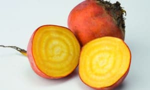 Amarelly is the first hybrid golden beet, so brings a new level of uniformity coupled with vigor. It is very round and smooth with outstanding color. The skin is a rosy red which contrasts beautifully with the bright gold interior. Relatively short and healthy tops combine to make a beautiful bunched beet.