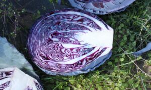 This stunning and tasty magenta colored Napa cabbage is easy to grow and cold tolerant but for late summer and fall crops only. It should not be timed to head in heat. With basically no green leaves, it is slow growing. While it stays purplish when cooked, the best use is raw in salads or as a wrap.