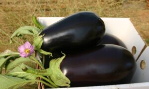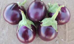 It’s hard not to use the word “cute” with Little Prince. The sturdy plant loads up with small oval/egg shaped fruit, usually in clusters of 2 or 3. It is one of many Indian eggplant types and can also work for Middle Eastern and Bosnian markets looking for small fruited eggplant to stuff and/or pickle.