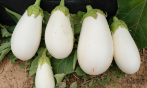 This new white eggplant is a real game-changer. Smooth, firm, and heavy. It has a refined small cap that is usually spineless. Flesh is dense, bright white, and slow to develop seeds. Excellent early and continuous yields.