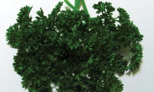 Double curled parsley with a strong, vigorous, upright growing plant with long stems for bunching. Dark green leaves maintain their color well.