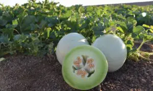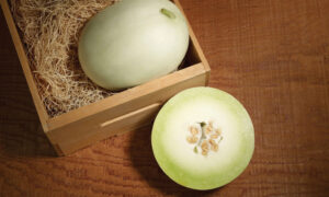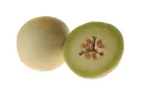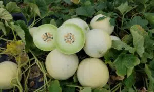 Shop Seed →This sweet, luscious honeydew, with sugars ranging from 13-16%, has good shipping ability. This honeydew is adapted to the humidity of the Eastern states and does not tend to crack other than faint “sugar cracks” that indicate ripeness. Melons are 6 1/2″ round with a small cavity and light green flesh.