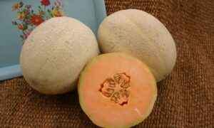 Shop Seed →Early! Fragrant, medium-firm flesh with very good flavor. This is an early melon to feel good about! Large-size for an early maturing cantaloupe. Best if harvested at half-slip.