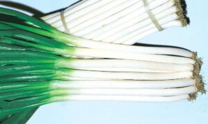 Waxy, dark-green stalks. Our best-selling bunching onion. Heat resistant, large bunching onion. Vigorous, upright grower with no bulbing. Excellent green to white ratio, and the greens resist breaking. Perfect for bunching!