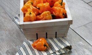 Shop Seed →Early hybrid habanero maturing from green to beautiful orange color. High yielding and heavy, large, thick-walled fruit with good shelf life. Strong plant, vigorous, and short internodes and true to the typical habanero shape.