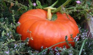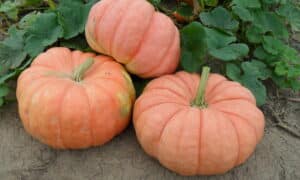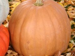 Shop Seed →Unique French heirloom. Beautiful bright red-orange color. Flat fruit resembles “cheese pumpkins” in shape, decorative and delicious. Good for pies and custards. 15′ vines.