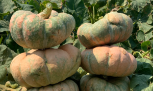 A hybrid Cinderella type. Pink-red color is immediately appealing and eye catching. Yields both round and flat fruit on a strong vine with IR:PM. Growers can expect a strong set.