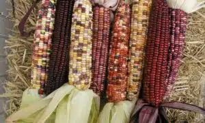 Hybrid ornamental developed for improved lodging resistance and color variation. 8″ – 9″ ears have various combinations of glossy red, white, pink, yellow, cola, purple, and variegated kernels. Some kernels are striped and spotted.