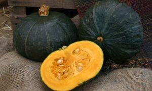 Shop Seed →Dark green fruit is 7″x 5″, 3 1/2- 4 lbs. with a true Kabocha look, inside and out. Vigorous full vine. Kabocha’s popularity now includes Latin cultures.