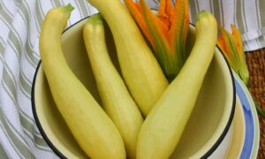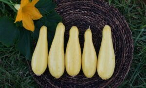 Shop Seed →This is a high-yielding quality straightneck with an impressive disease tolerance package. Green stems, sturdy, unique plant with silvery-mottled leaves, smooth fruit.