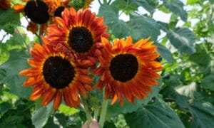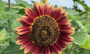 Shop Seed →Midnight Rouge is a striking nearly black to rich-burgundy colored sunflower with a velvety look. It is primarily single-flowered but will branch with extra space. Flowers are 4” to 6” across and plants are 4 to 6 feet tall. It makes a beautiful and long lasting cut flower but will drop some pollen. It is ornamental in the garden, or field, with darker shading to the leaves and stems.