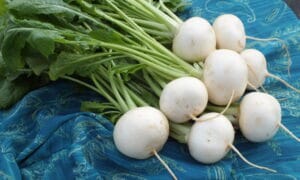 This white Japanese turnip is sweet and mild with excellent earliness, uniformity and a refined appearance. The medium-sized tops are a shiny dark green. With good heat and bolting tolerance, it can be grown from early spring to late fall. Has Club Root resistance.