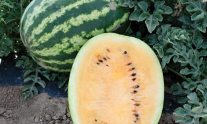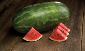 Shop Seed →Dark, wide stripes on a light green background. Flesh is deep red in color, juicy and provides sweet taste. Royal Sweet-type hybrid. Good for pollination to help maximize the yield potential of seedless varieties grown nearby.