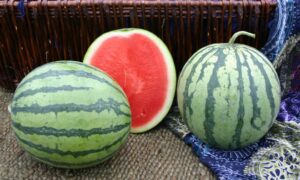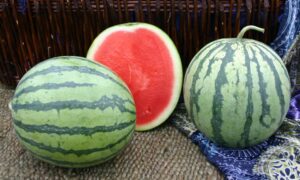 Shop Seed →Rind with dark stripes, round shape, deep red and firm flesh, and very good taste.