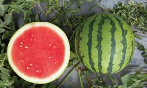 Shop Seed →Outstanding yielder. Shape is round and uniform. Attractive dark skin with fading stripes. Flesh has an intense red color, very good rind thickness. Great shelf life. Brix 12-13%.