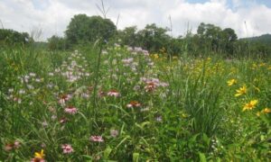Bee pollinator mix is exclusively formulated to provide food and shelter for bees and other beneficial pollinators. Colony collapse disorder is threathening the bee population that we depend on to pollinate crops. One of the contributing causes to this serious problem is the reduction of available native plants that bees depend on for nectar and cover. Expect 3 to 4 years of blooms, after which weed competition may require additional sowing. Seeding Rate: 1 lb./2000 square feet.