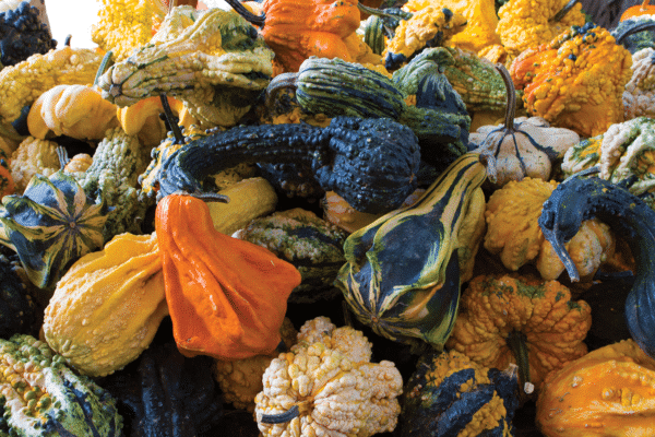 Mixture of colorful, winged gourds. 2 ½” – 3” bulbs with a neck up to 12” long.