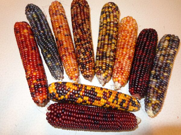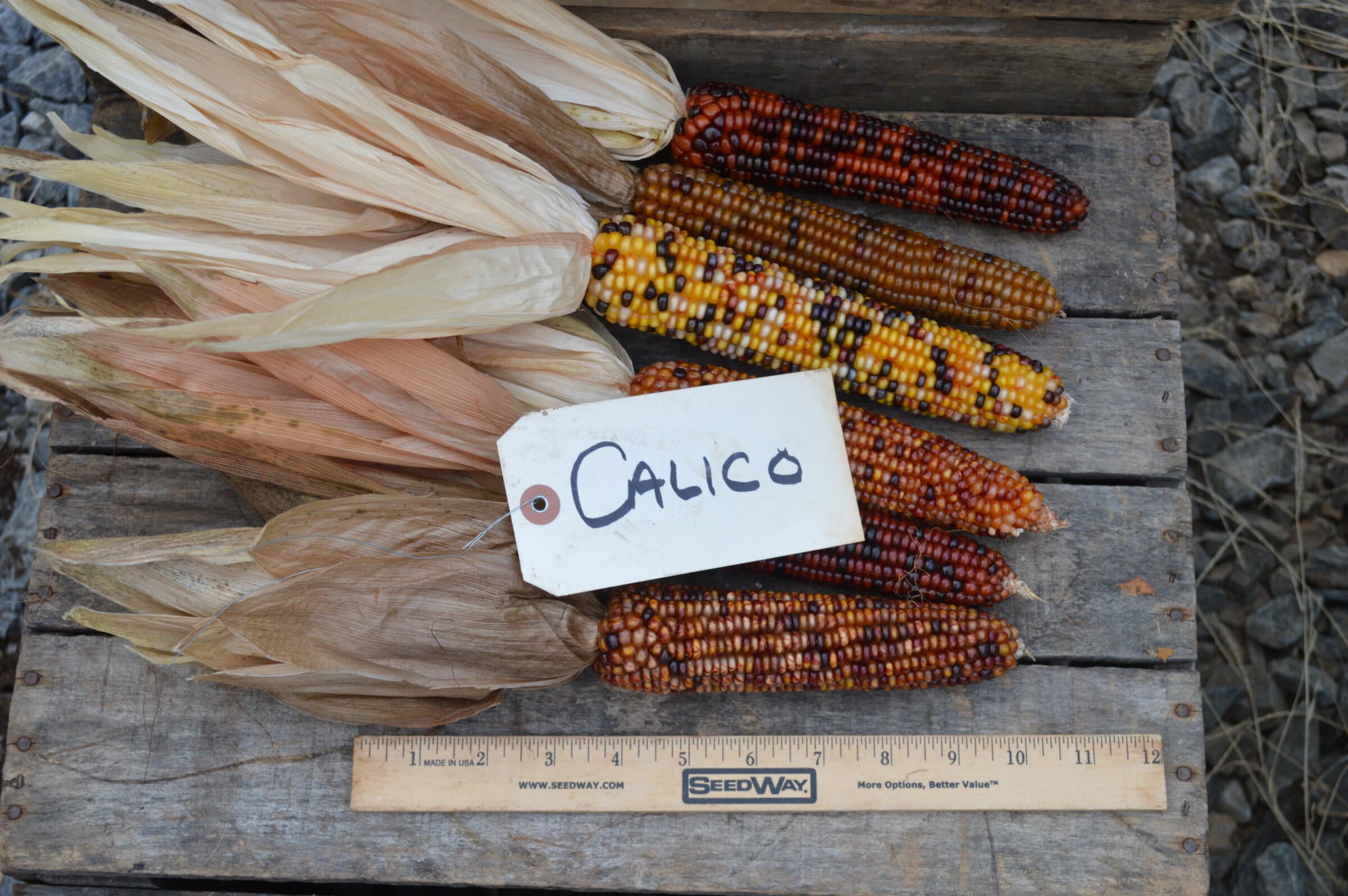 Calico popcorn ears are larger than our miniature popcorn varieties, but smaller than Indian corn. The ears range in size from 5-8″. The kernels of seed are multi-colored with reds, yellows, and calicos most common. There are also ears with brown, black, green, blue, pink, and orange kernels and many ears with shades of these colors. The seed can be popped or used for decorations. (3,000 seeds per pound).