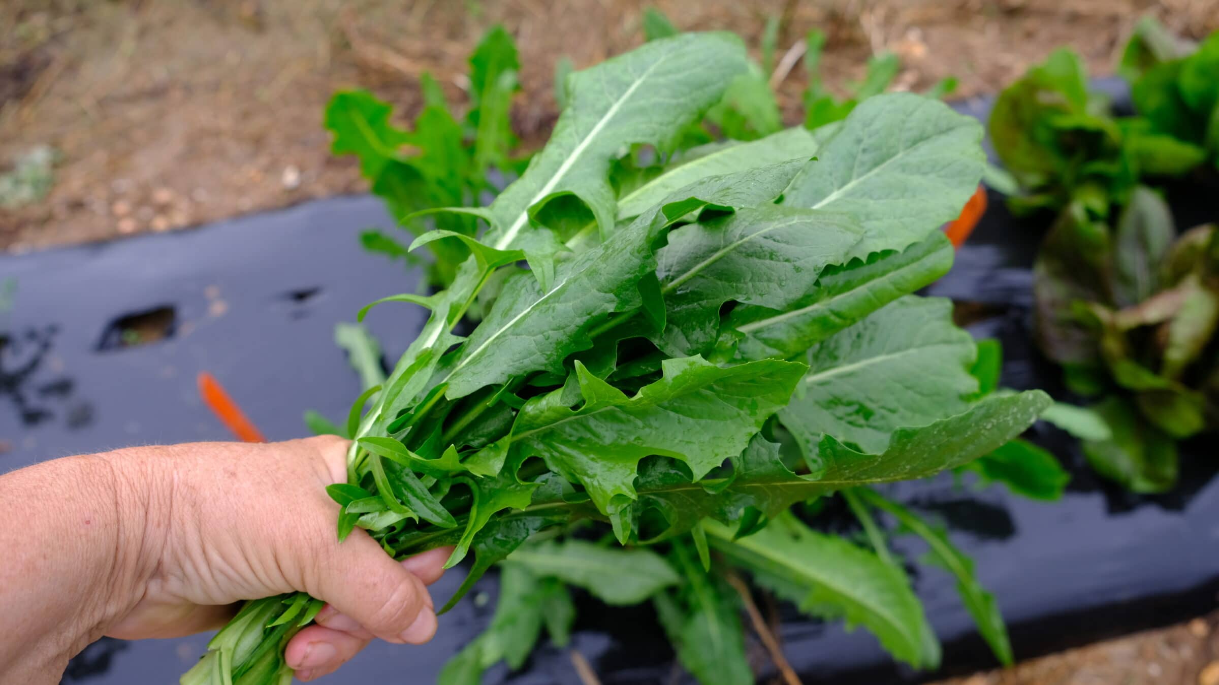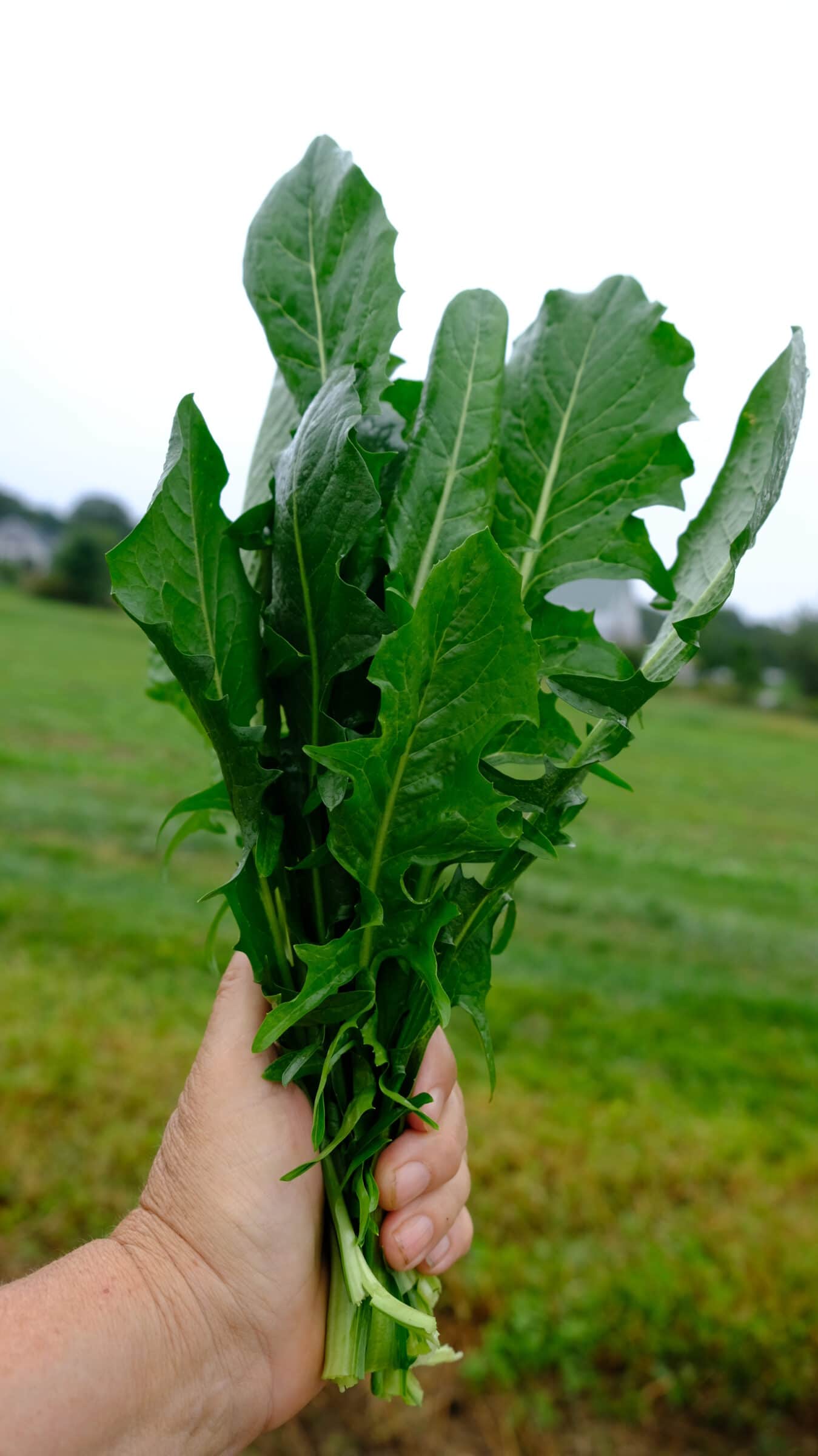 Culinary Benefits: Dandelion greens are similar in size to a bunch of kale with narrow, jagged leaves. They have an earthy, slightly bitter flavor that changes when cooked or wilted. Dandelion is consumed both raw and cooked. Almost all parts of the dandelion, aside from the stem, may be utilized in culinary applications. Dandelion greens are generally mixed into dishes. They are often used in salads or stir fry’s, but can also be baked, poached or griddled. Dandelion greens may also be dried and made into tea.