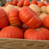 Unique French heirloom. Beautiful bright red-orange color. Flat fruit resembles “cheese pumpkins” in shape, decorative and delicious. Good for pies and custards. 15′ vines.