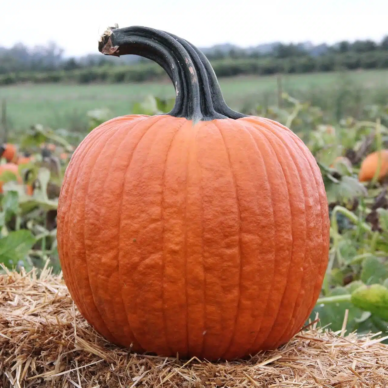 Looking for an extra-large pumpkin and lower bin count, Cronus makes round to round-flat fruit with an exceptionally long handle and distinctly flared attachment.