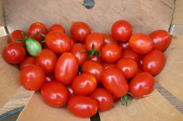 Sweet fruit grows on a vigorous plant that sets clusters of grape tomatoes with high-sugar content. This oval-shaped fruit has an excellent red color and is very sweet.