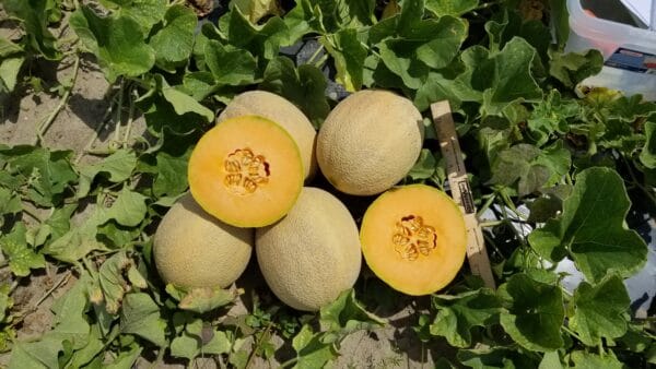 Extended shelf life melon with excellent firmness that helps promote increased field holding ability and shelf life. Damaris has a refined net and dark interior color. Harvest like eastern shippers. Damaris will pick 3 to 4 times.