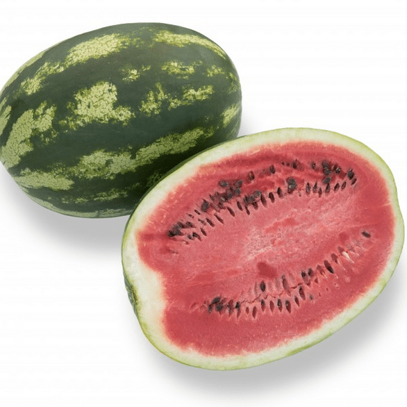 Dark, wide stripes on a light green background. Flesh is deep red in color, juicy and provides sweet taste. Royal Sweet-type hybrid. Good for pollination to help maximize the yield potential of seedless varieties grown nearby.