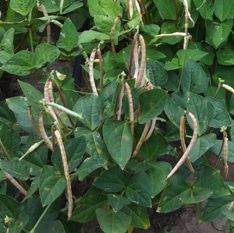 It will stand 10-12 inches tall and spread 42 inches with its runners. pods are born above foliage. Level are medium green changing to yellow at sheller stage. 7-8 inches long and slender having 14 peas per pod.
