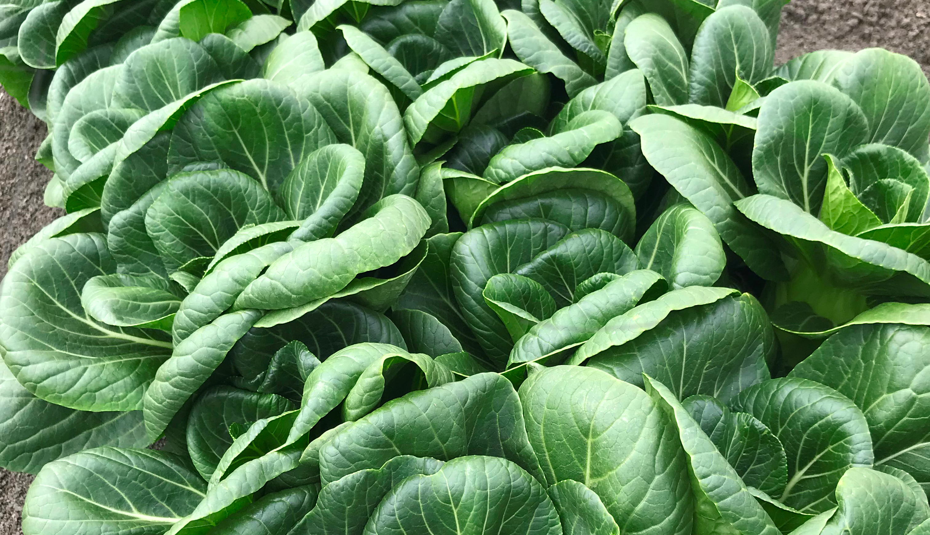 The green stem (Shanghai) Pak Choi is smaller than Mei Qing Choi and slower bolting than Li Ren Choi, which it resembles in size. The leaves are a deeper green and the habit more erect. It can be harvested as mini pak choi for larger bags, or left to grow larger for the three-piece bags popular for farmers markets. The slow bolting gives it a longer harvest window.