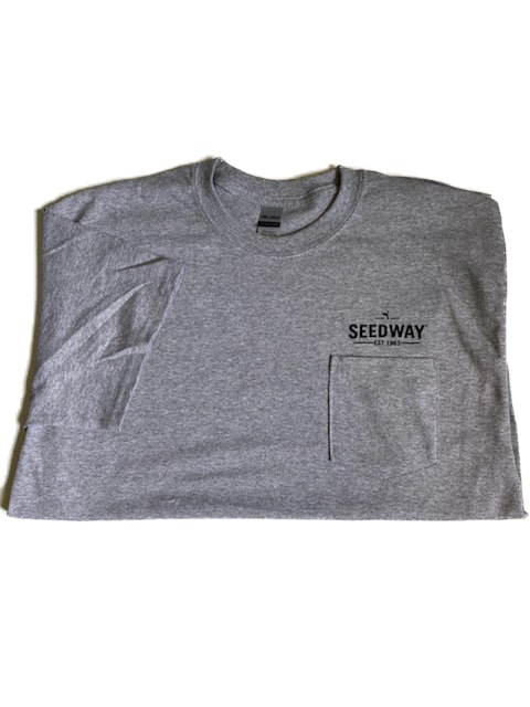 Gilden 100% preshrunk cotton. Left Chest pocket with black screen print.