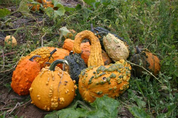 You haven’t seen anything like this! A mix of large-warted gourds in an array of shapes and sizes! Allow plenty of time for warts to develop, approx. 120 days. 5 – 15 lbs.