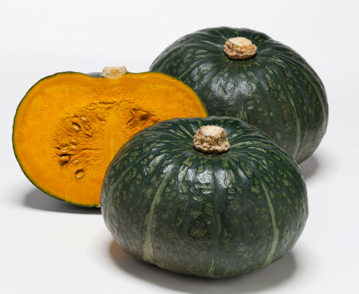 Darker, Japanese-type Kabocha. Preferred in some regions for it’s darker, black-green exterior that resists fading. Consistent in performance and quality; tends to be a strong grower.