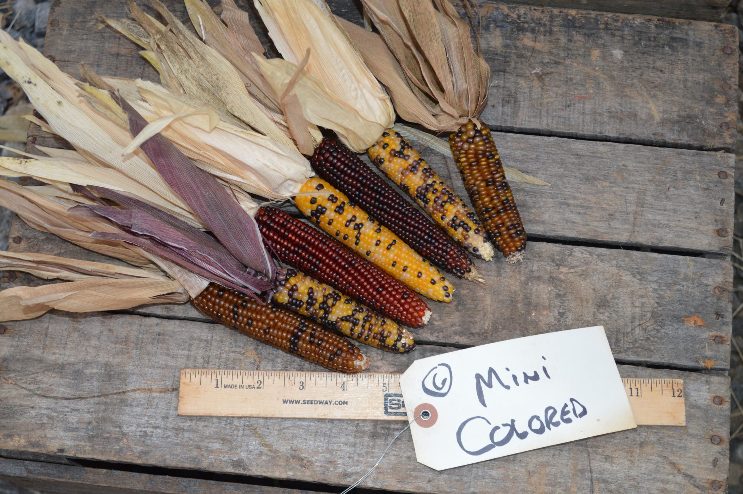 Red, yellow, black, gray, brown, purple, pink, blue, white, orange, and many different calicos. Most ears are combinations of many colors. (7500 seeds per pound).