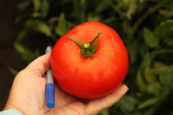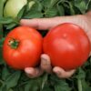 New late blight, TSWV resistant crimson hybrid from Dr. Randy Gardner, NCSU professor emeritus. Vigorous determinate plant bears high quality, deep oblate to flattened globe shaped firm fruit. High yielded with extra large fruit and clean blossom ends. For market growers and commercial production.