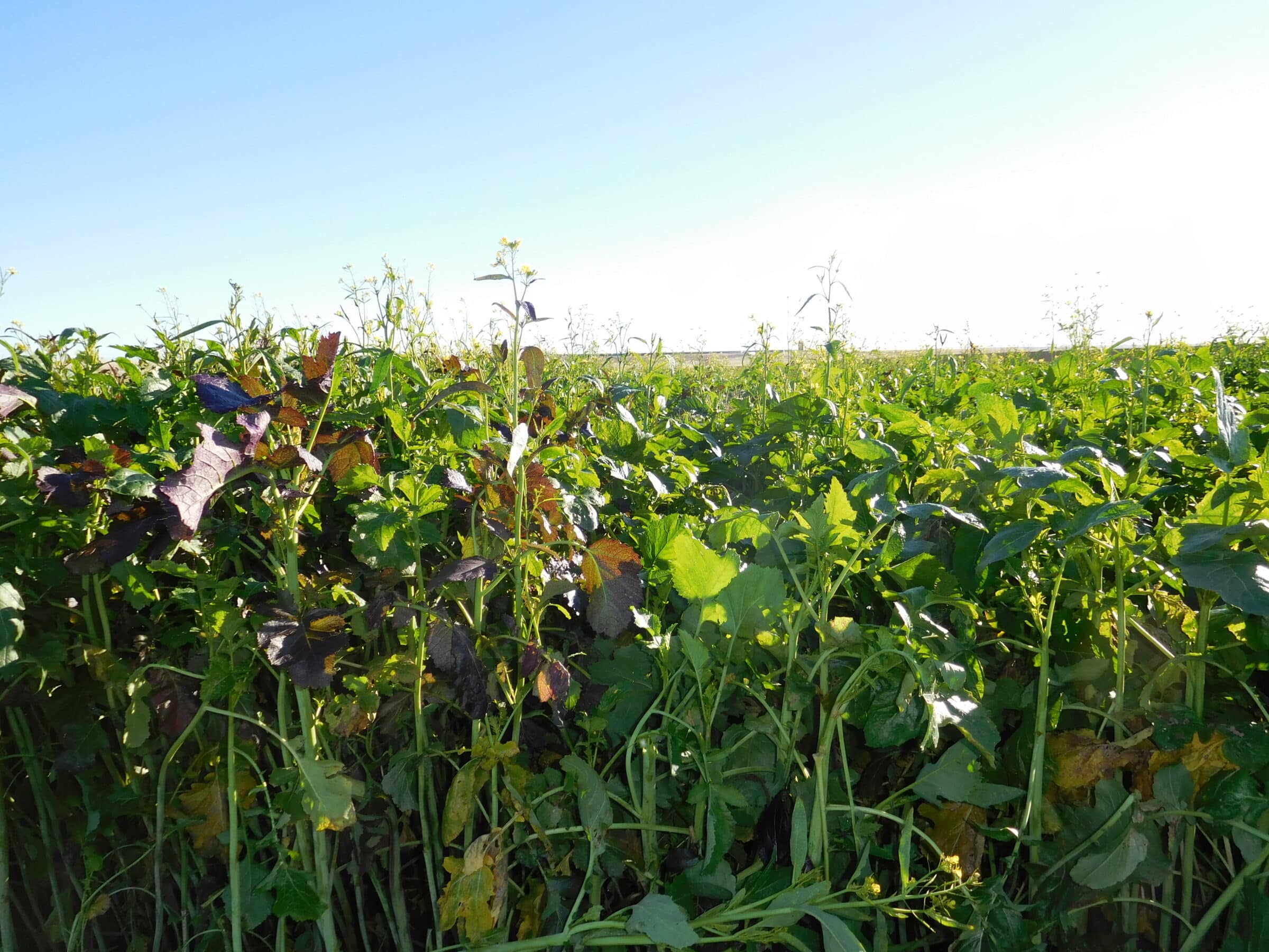 This is a blend of arugula and mustard (Brassica Juncea). Nemat is an arugula variety for trap crops or to suppress root-knot and cyst nematodes. Caliente Rojo is a Brassica juncea blend with the highest glucosinolate concentration available making it an effective biofumigant. Rojo is very vigorous (and the red color is attractive). Used together, they provide an especially effective biofumigant for nematode and wireworm suppression along with weed & disease reduction. The Nemat arugula is lower growing and is added because the root exudates are very attractive to nematodes and wireworms. This attracts these mobile pests closer to the surface, enhancing the biofumigation action of the Caliente Rojo.