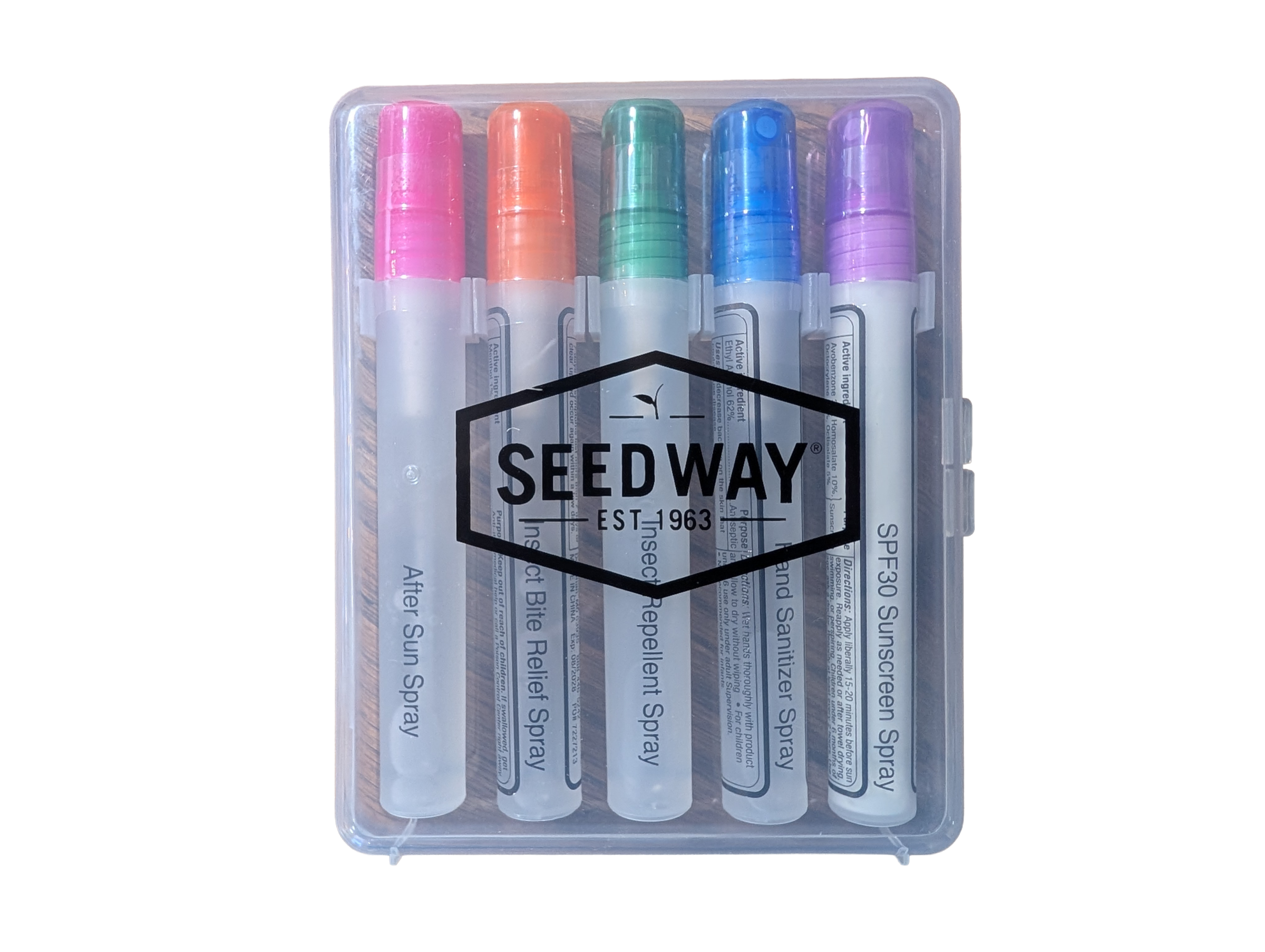 Kit Includes: after sun spray, insect bite relief, insect repellent, hand sanitizer and sunscreen