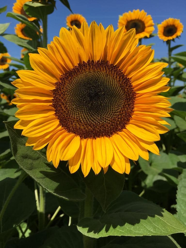 ProCut Horizon is a traditional yellow sunflower hybrid with heads that face up on a single sturdy stem. It is pollenless for cut-flowers. It is day length neutral meaning it can be grown over winter in frost free areas and for late fall crops in the north. It is very uniform with a slightly smaller flower than ProCut Orange. 4 to 6 feet.