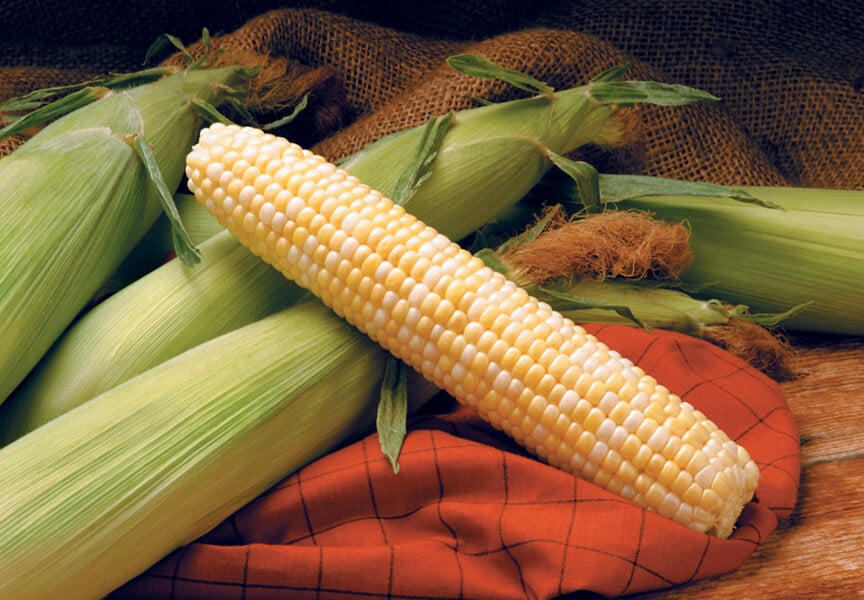 Synergistic Triple Sweet. Our best-selling main season Se corn. Sturdy 7′ plant with an handsome 8″ ear. Provides higher levels of sweetness. Very long, well-filled slightly tapered ears. Excellent appearance, tip fill, cover, and flavor. Use mid to late.