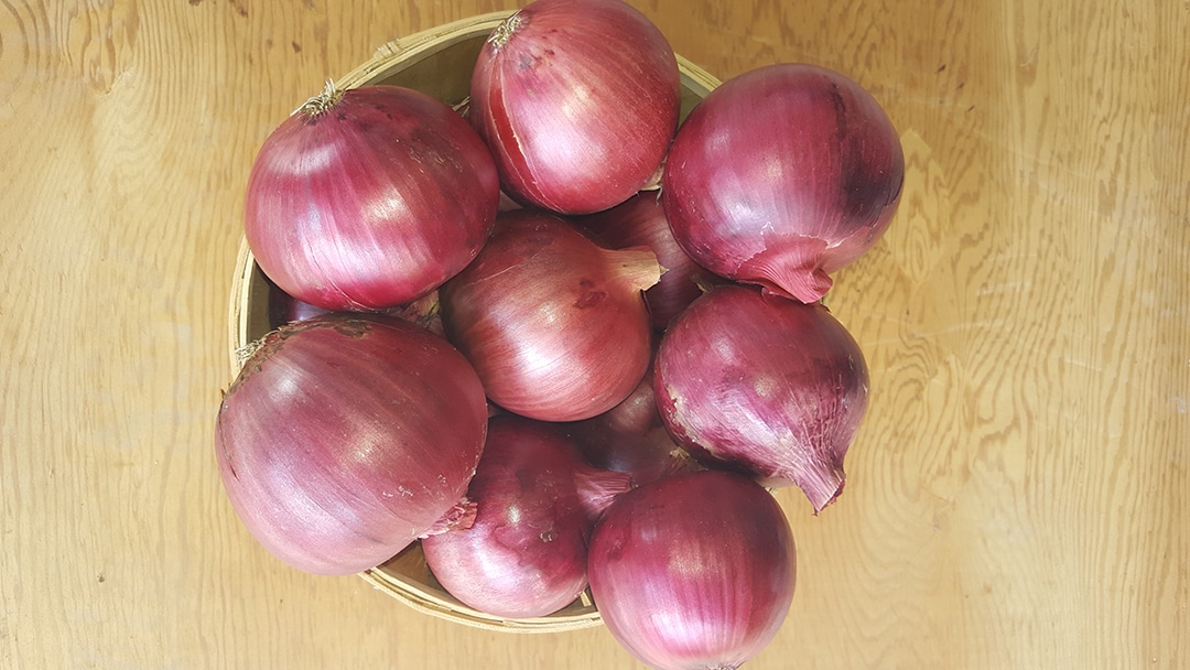 Uniform large onions with consistent, deep red internal color. Long storage and best if grown from transplants.