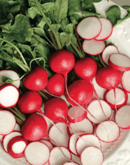 Globe, deep red, medium top size, matures in 25-28 days, very uniform root size and shape, medium upright tops, use for bunching, cello and slicing. Excellent fresh quality with white interior.