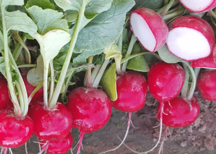 High quality radish with good resistance to root disease. Dark red with thick skin. Excellent internal quality. Great for bunching, cellos, and slicing.