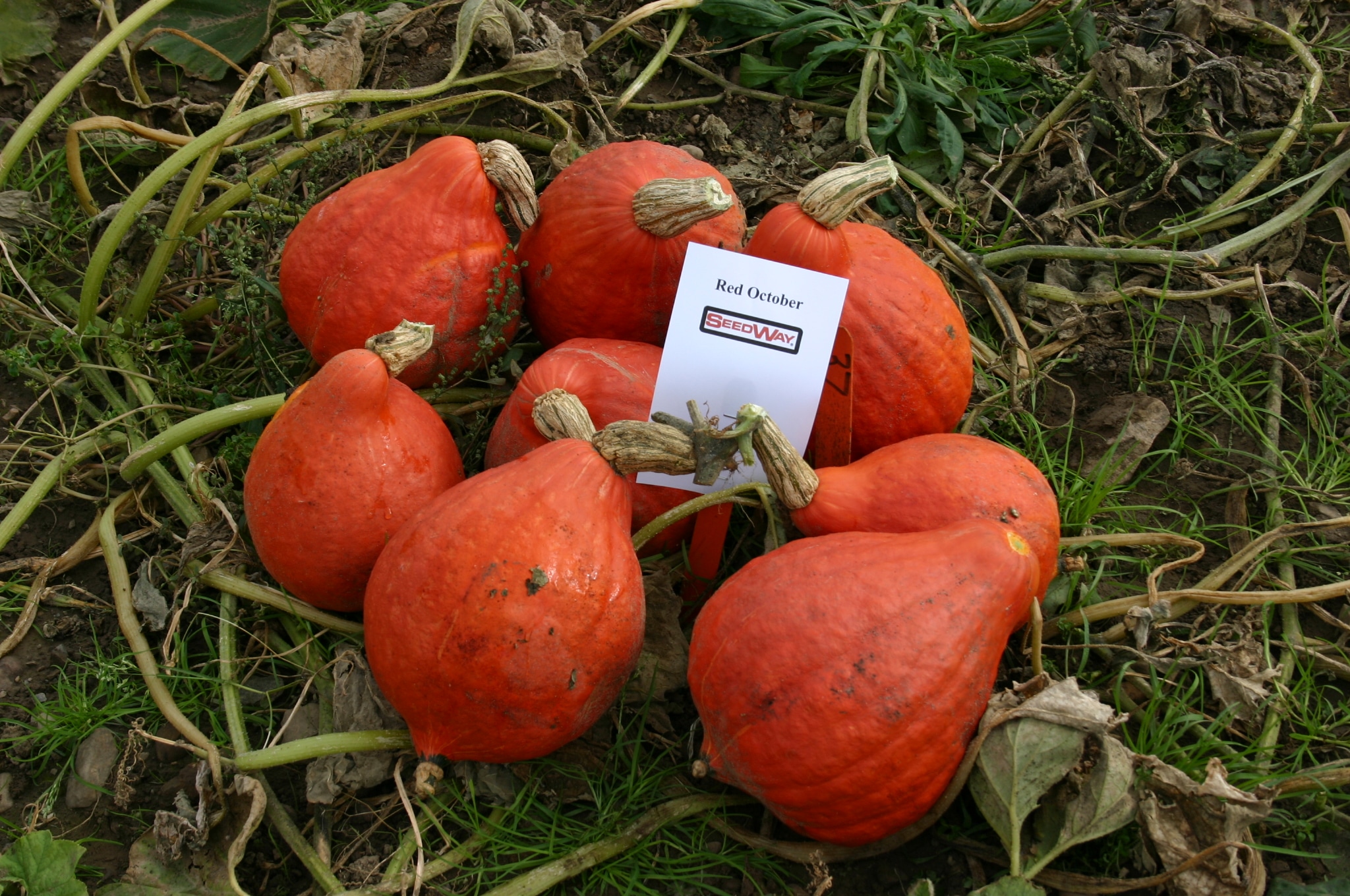 Striking red color is the hallmark of this variety! This is smaller hubbard type exhibits productivity and uniformity and easily finds its way into ornamental applications.