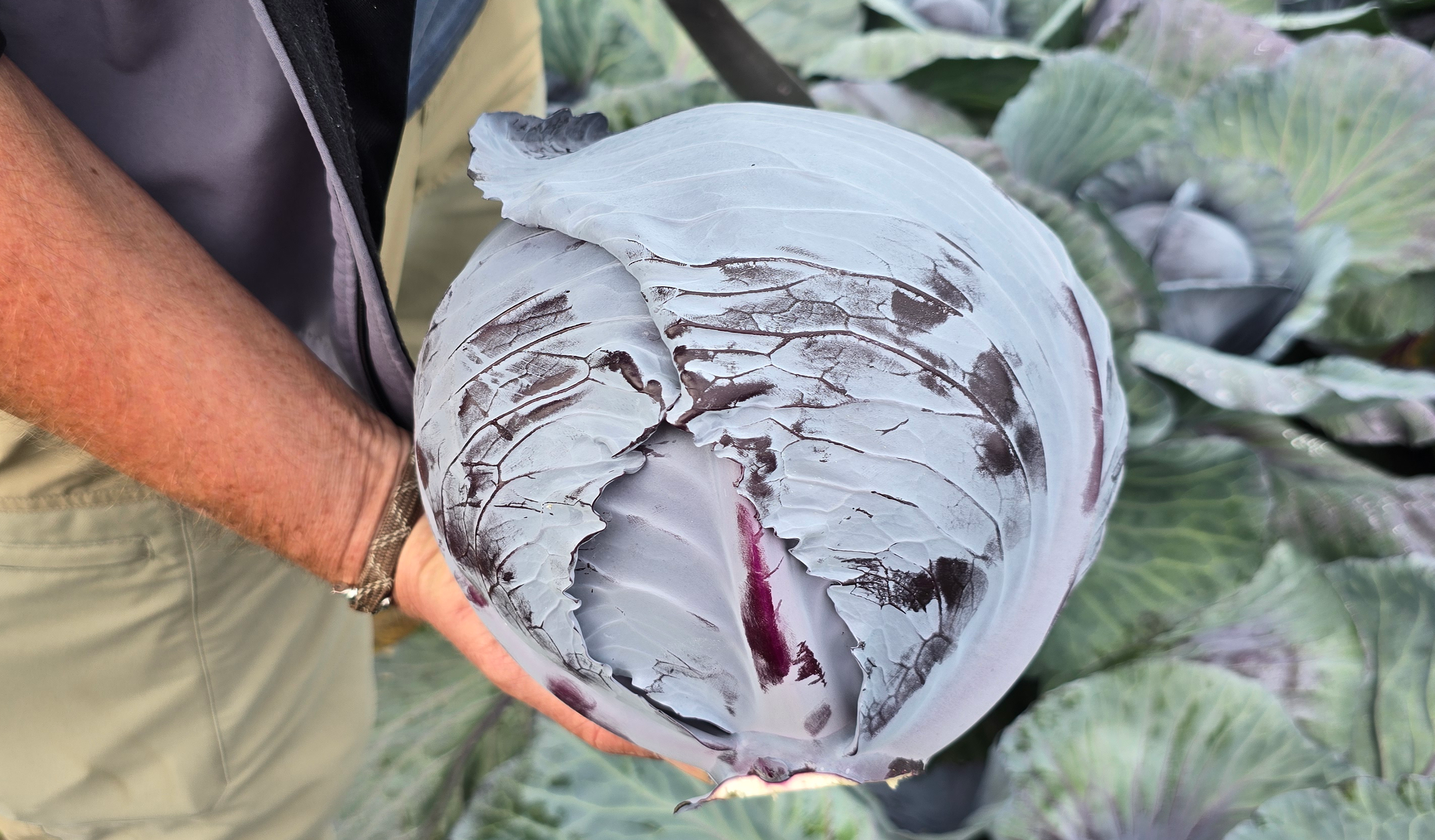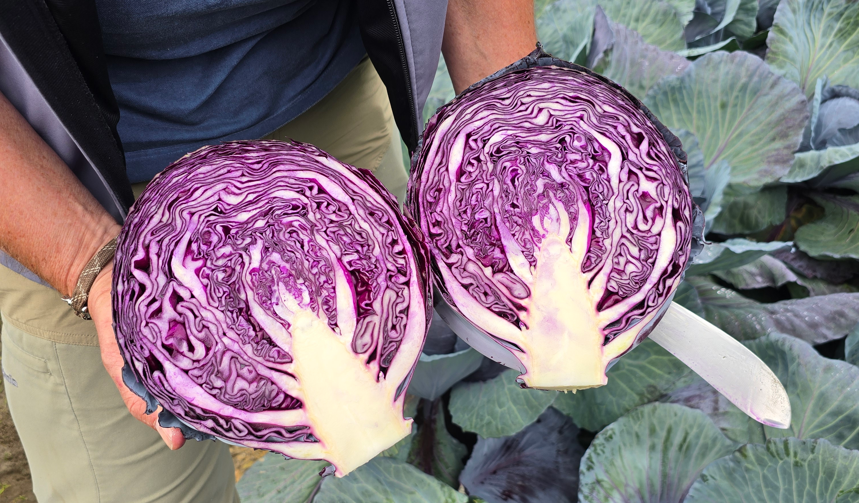 Resima is a dark red storage variety that has rounder heads than other other storage varieties. It stores well- longer than six months. Heads weigh 6 lb to 7 lb. and are uniform in shape and maturity. It is widely adapted and can be crowded for smaller, boxing-size heads. Grown with more space, it can be used for processing.