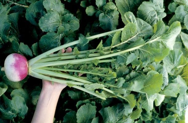 Improved Purple Top White Globe hybrid, suitable for both roots and tops (which are cut-leaf type). Good bolt tolerance. Roots retain fine interior quality into larger size.
