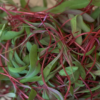 Shiny green blistered leaves have true ruby red veins and stems. ORGANICALLY PRODUCED.