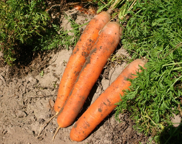 Tender and crisp carrot with pleasing sweetness, especially when young. Tops are 15″ and fairly strong. Good for bunching.