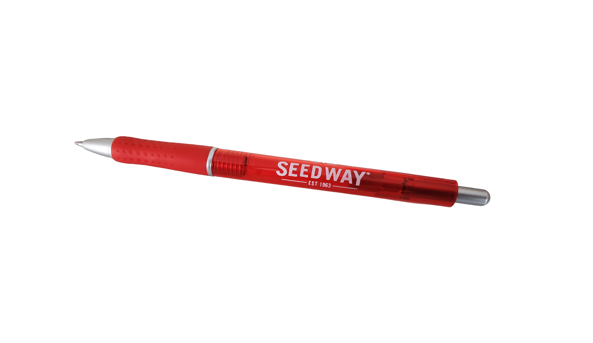 These click-action, retractable pens write in medium-point black ink. Eye-catching red translucent barrel with a matching rubber grip, clip, and silver accents.