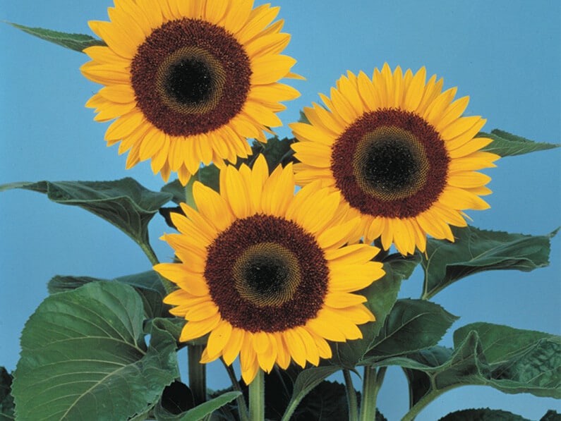 3′ tall, well-branched plants bloom all-season long. Pollenless flowers have bright-yellow petals and brown centers.